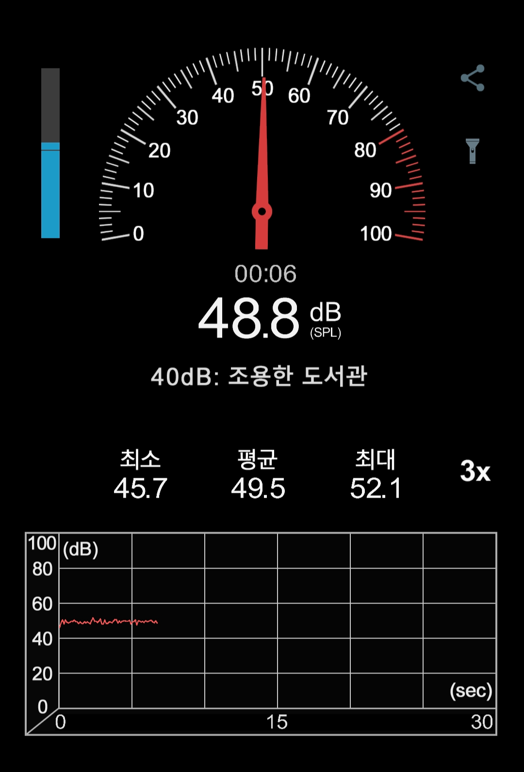 우우웅~ 27 데시벨에서 48 데시벨까지 올라간다.